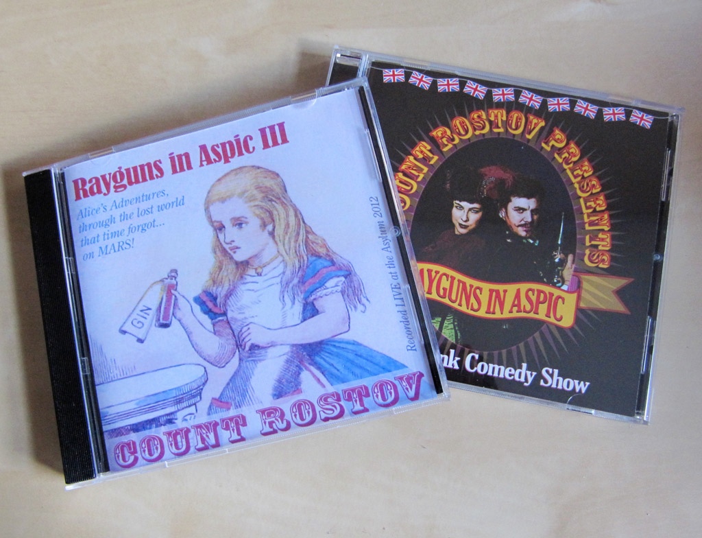 In the tradition of all those old, British radio shows, with their mad sketches, funny characters, clever word play and silly sound effects – comes this steampunk-flavoured comedy show...With a series of sketches based loosely in a Victorian era where the stories of HG Wells and Jules Verne are fact rather than fiction, and where the jokes are even older, 'Rayguns in Aspic' celebrates classic radio comedy. The CD also includes a bonus comedy adventure entitled 'Mummy Dearest'. 'Rayguns in Aspic' was originally produced as a radio play, performed live on stage, for the largest steampunk convention in Europe, the Asylum in Lincoln in 2010. This was so successful, that the cast went into the studio and recorded the show with renowned music producer Kuljit Bhamra. £ 9.99